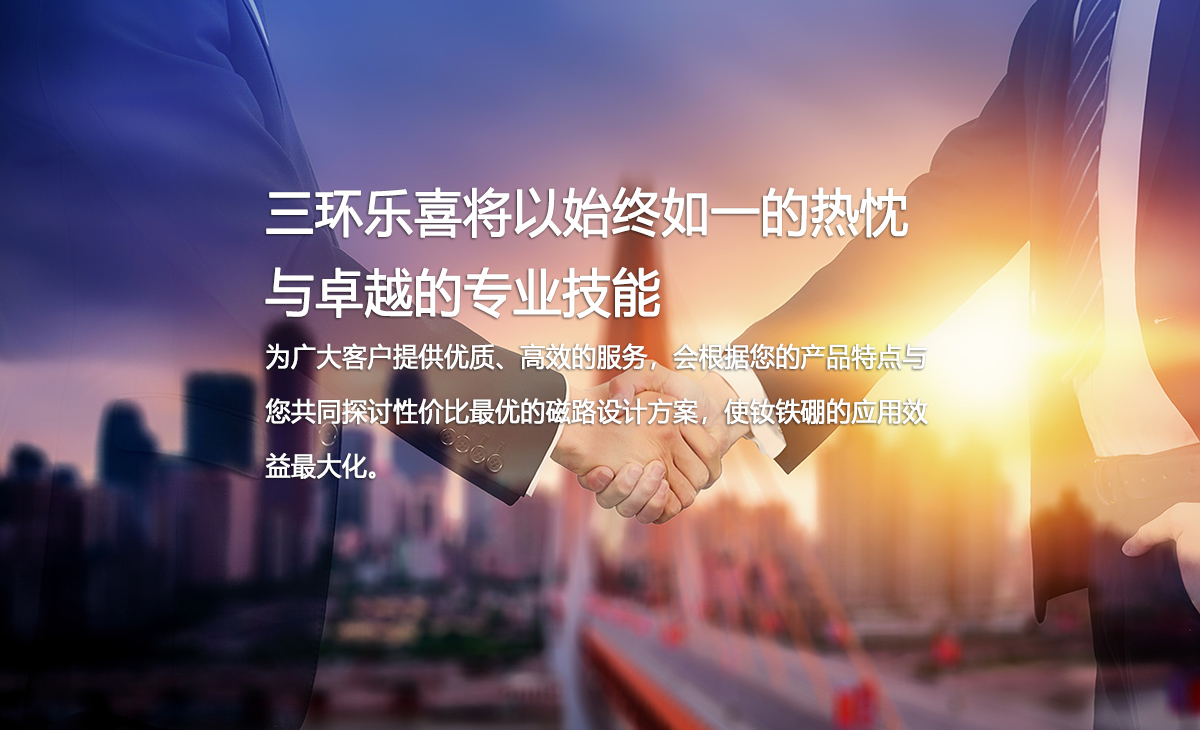 三環(huán)樂(lè)喜新材料有限公司,成立于1990年,控股股東中科三環(huán)(股票代碼:000970)為中國(guó)稀土永磁材料產(chǎn)業(yè)的代表企業(yè)、全球特大的釹鐵硼永磁體制造商之一。自成立以來(lái),公司一直致力于研發(fā)、生產(chǎn)、銷售中、高品質(zhì)燒結(jié)釹鐵硼,年生產(chǎn)能力超過(guò)6000噸,是中科三環(huán)的重要生產(chǎn)基地。